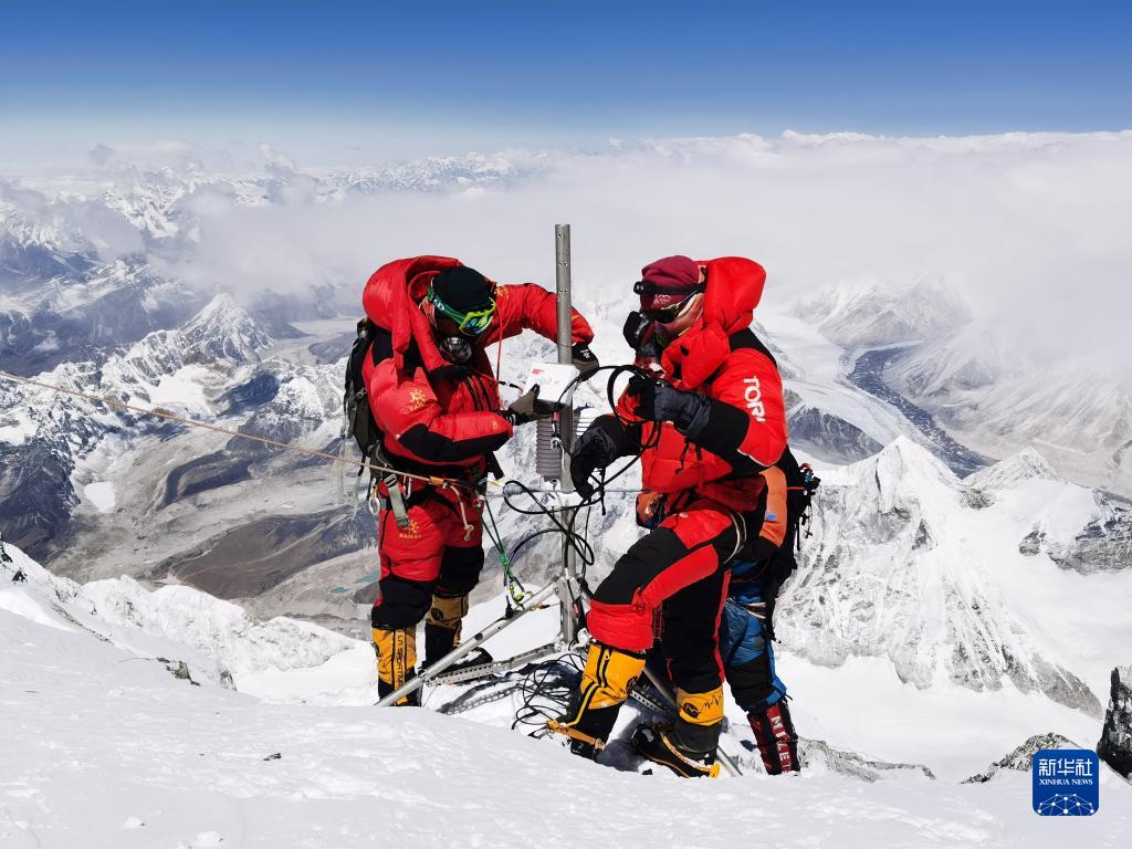 5月4日,德慶歐珠帶領(lǐng)的登頂小組科考隊(duì)員,在珠峰海拔8830米處架設(shè)世界海拔最高自動(dòng)氣象站,建成珠峰梯度氣象觀測體系;在峰頂首次利用高精度雷達(dá)測量冰雪厚度,并采集了峰頂冰雪樣品。