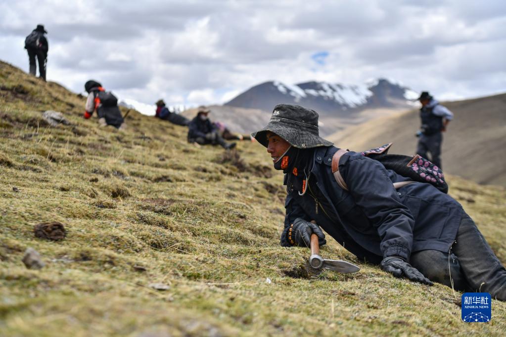 5月25日,牧民在采集蟲草。新華社記者 晉美多吉 攝