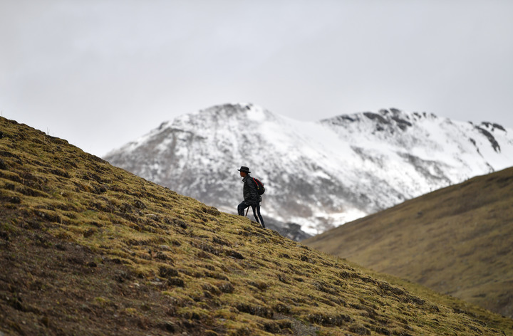沿著陡峭山坡,攀至海拔超過(guò)4700米的地方,才能來(lái)到冬蟲(chóng)夏草藏身的草甸。一條腿彎曲、一條腿伸直、手肘支撐、俯身低頭,高原上的村民就這樣以擁抱大地的姿態(tài),搜尋著隱藏其中的暗棕色芽尖——冬蟲(chóng)夏草。剛剛將蟲(chóng)草挖出,采挖蟲(chóng)草的牧民就拿起鋤頭用鈍頭輕敲地面,把掀開(kāi)的土壤回填到原位——他們用這樣簡(jiǎn)單而樸實(shí)的方式保護(hù)著大自然的饋贈(zèng),為來(lái)年冬蟲(chóng)夏草的生長(zhǎng)打好基礎(chǔ)。