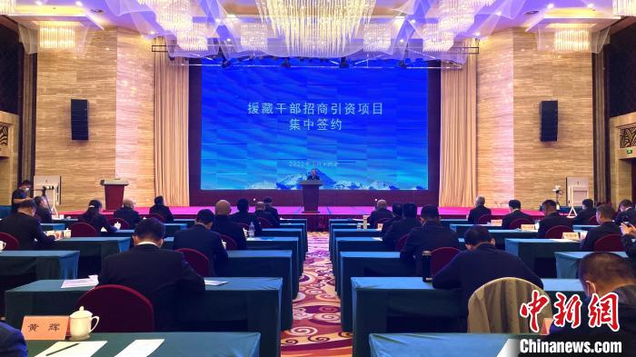 圖為援藏干部招商引資項(xiàng)目集中簽約線下現(xiàn)場(chǎng)。謝牧 攝