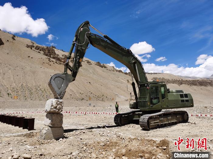 圖為官兵展示挖掘機(jī)精準(zhǔn)穿刺。 陸文凱 攝