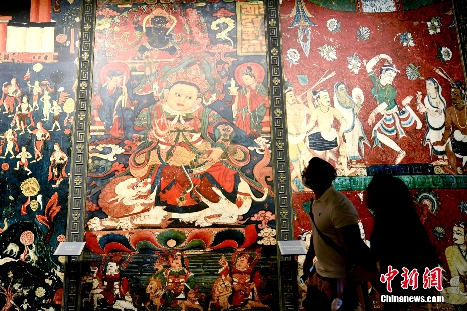 7月8日,歷時(shí)五年建設(shè),西藏博物館新館正式對(duì)外開放。西藏博物館緊鄰世界文化遺產(chǎn)布達(dá)拉宮和羅布林卡,2017年10月,其改擴(kuò)建項(xiàng)目正式啟動(dòng)。新館在老館基礎(chǔ)上進(jìn)行擴(kuò)建,建筑外觀沿襲傳統(tǒng)藏式建筑。據(jù)了解,西藏博物館館藏文物52萬(wàn)件。其中,珍貴文物達(dá)4萬(wàn)余件(套),類別包括考古出土文物、印章封誥、唐卡、古籍、造像、法器、瓷器、玉器、絲織品、雜項(xiàng)等十八類,具有極高的歷史、藝術(shù)和科學(xué)價(jià)值。此次開館,共有2700余件(套)文物展出,其中有600余件(套)文物首次展出。圖為游客在館內(nèi)參觀。 中新社發(fā) 李林 攝
