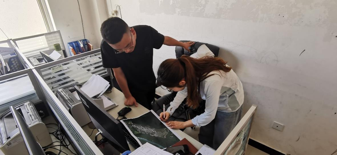 支隊成員正在研究規(guī)劃圖