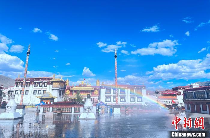 圖為拉薩消防指戰(zhàn)員在大昭寺廣場消殺?!±_市消防救援支隊(duì) 攝