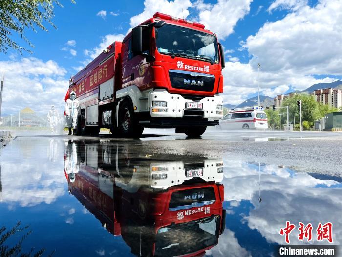 圖為拉薩消防指戰(zhàn)員在主城區(qū)進(jìn)行消殺?!±_市消防救援支隊(duì) 攝