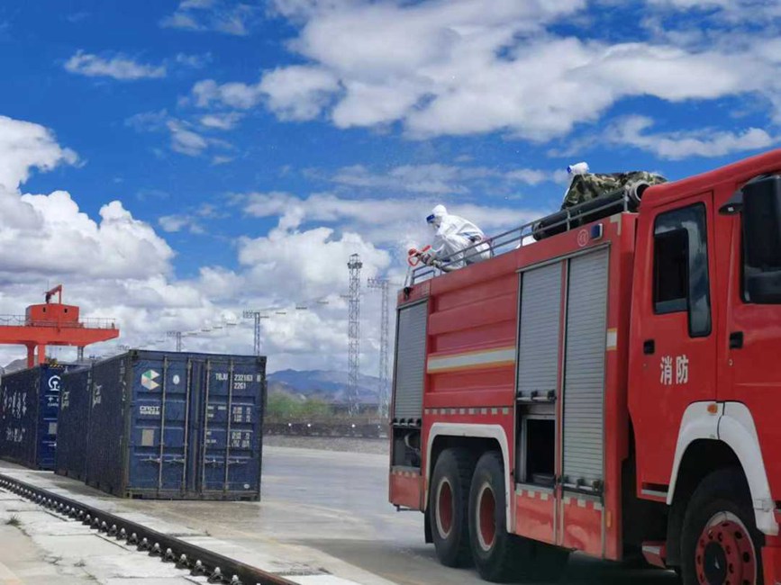 拉薩西站聯(lián)系堆龍德慶區(qū)乃瓊街道防疫部門組織堆龍消殺隊,對拉薩西站東門區(qū)域、中風(fēng)險區(qū)宏順裝卸宿舍樓內(nèi)及大門進行專業(yè)、全面、系統(tǒng)性消殺;日喀則站聯(lián)系市疫情防控部門消殺組,對林瑞達裝卸隊院內(nèi)、貨運職工、裝卸隊住宿樓進行;那曲站聯(lián)系市消防部門對車站、站臺、貨場等重要場所進行專業(yè)、全面、系統(tǒng)性消殺。