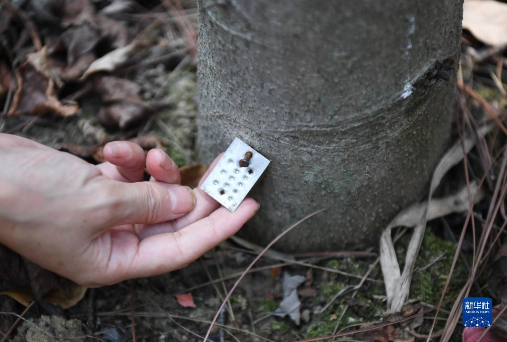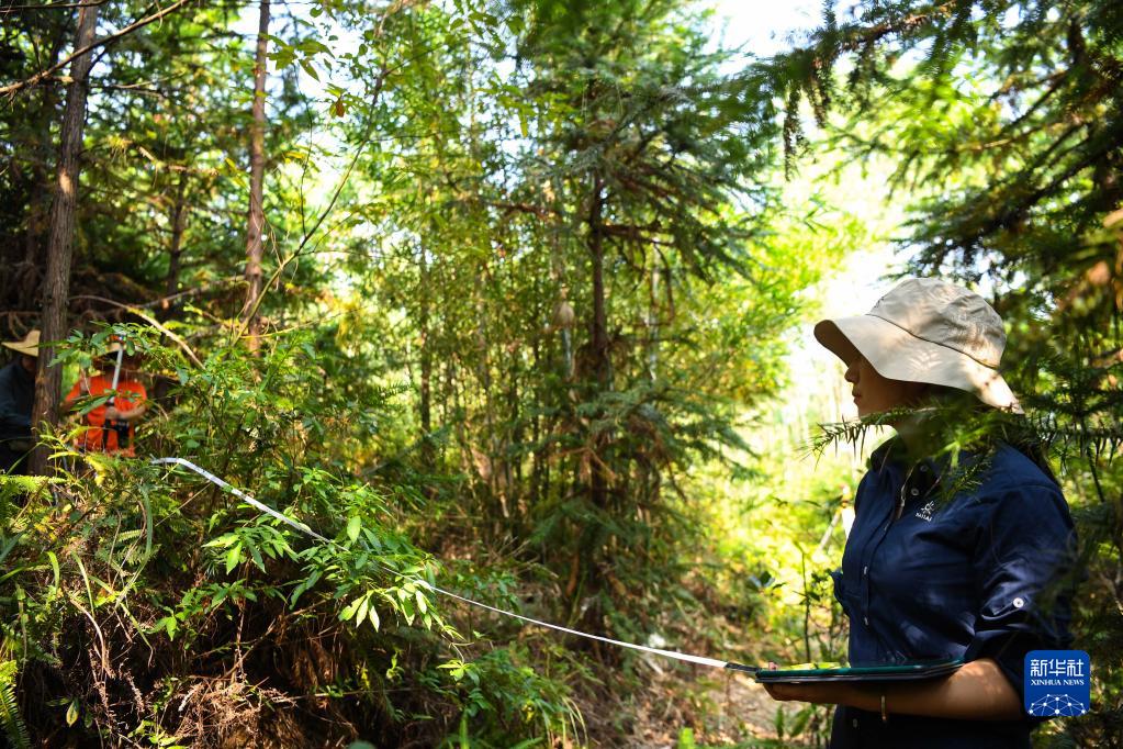 9月22日,白拉曲珍和同事在位于廣東韶關(guān)樂昌市張溪村的生態(tài)監(jiān)測樣地工作。新華社記者 鄧華 攝