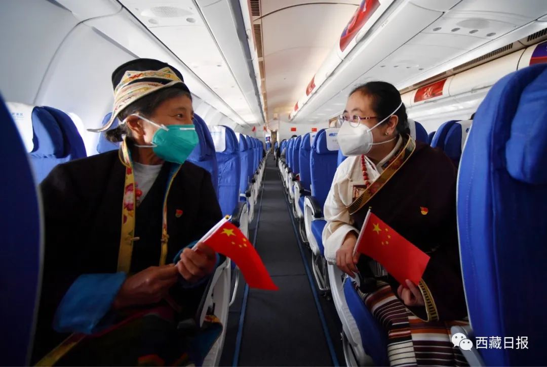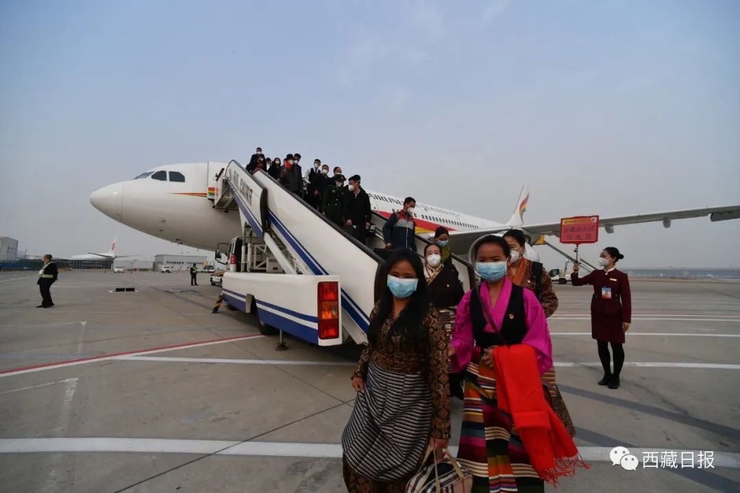 今天下午,西藏自治區(qū)出席黨的二十大代表乘機抵達北京,向大會報到。