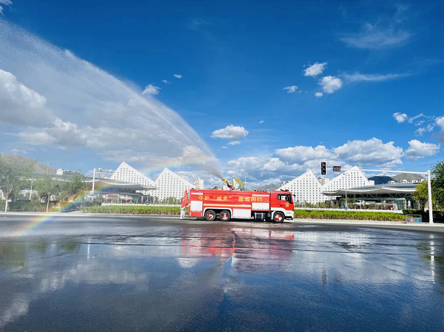 2022年8月13日,一條《彩虹下的心愿,愿疫情早日退去》的視頻刷爆拉薩市民的朋友圈,視頻中消防指戰(zhàn)員化身“大白”,逆行而上,在拉薩主城區(qū)以社區(qū)網(wǎng)格為基本單位開展消殺。當天,消防車30輛、指戰(zhàn)員146人集體出動,噴灑而出的消毒液在陽光下形成了一道道彩虹。