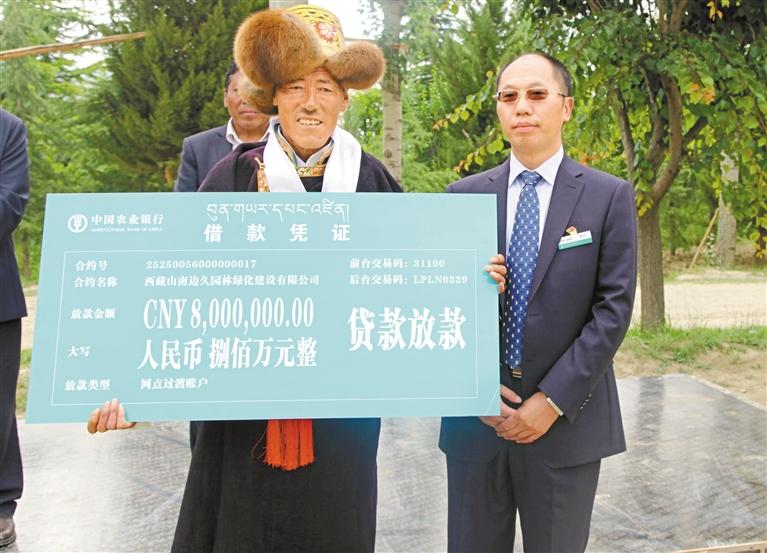 農(nóng)行山南分行為山南邊久園林有限公司發(fā)放西藏自治區(qū)首筆林權(quán)抵押貸款。