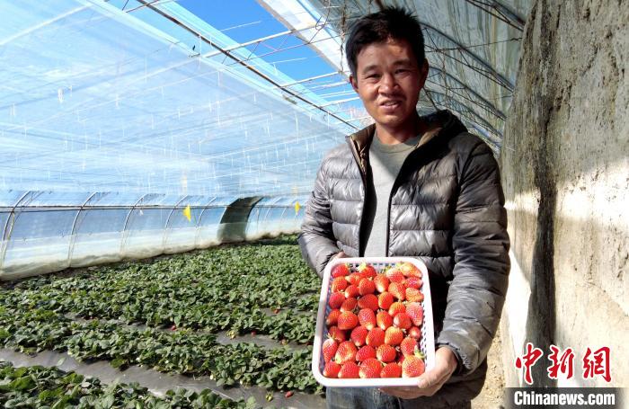 11月25日,西藏拉薩林周縣卡優(yōu)村果農(nóng)展示剛剛收獲的草莓。 李林 攝