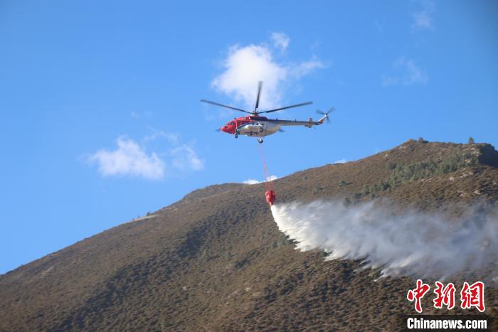 直升機開展吊桶灑水作業(yè)?!∥骼@拉翁 攝