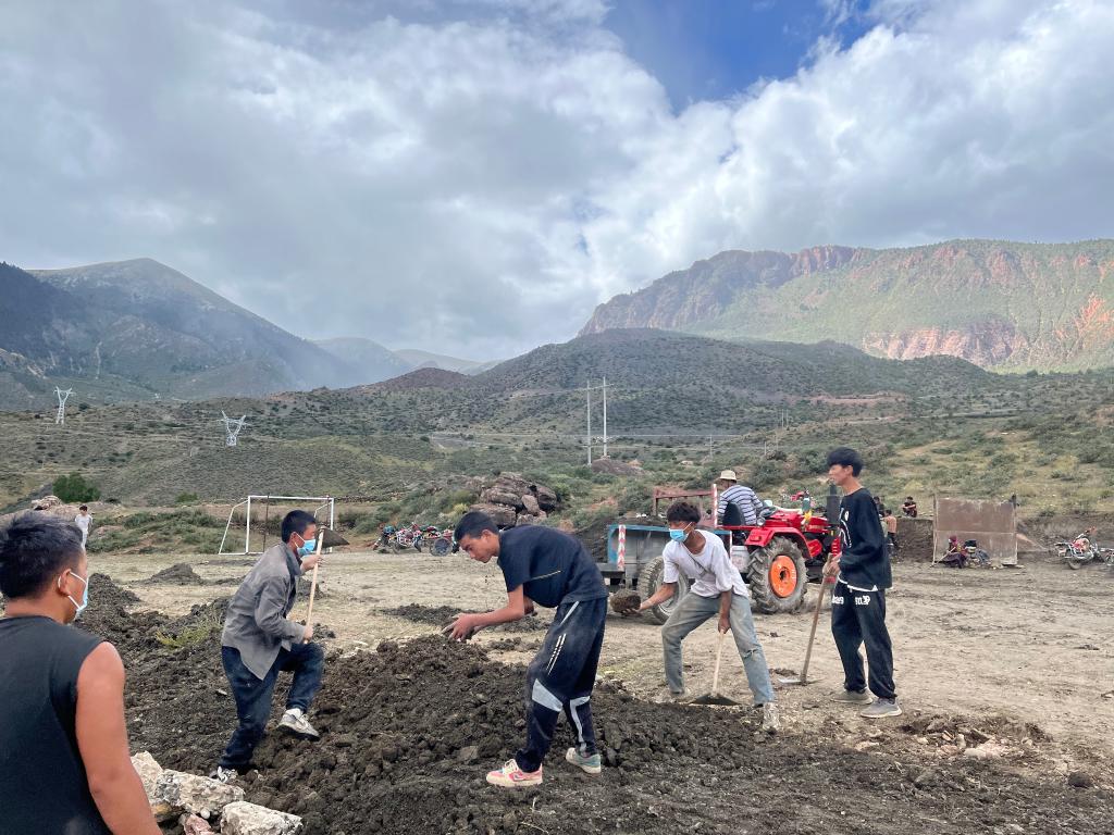 昌都市洛隆縣馬利鎮(zhèn)馬利村村民們自發(fā)修建的足球場(chǎng)。