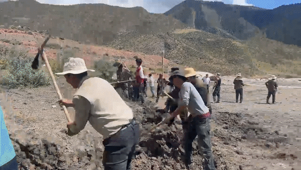 馬利鎮(zhèn)馬利村的孩子正在跟大人們一起平整場(chǎng)地。