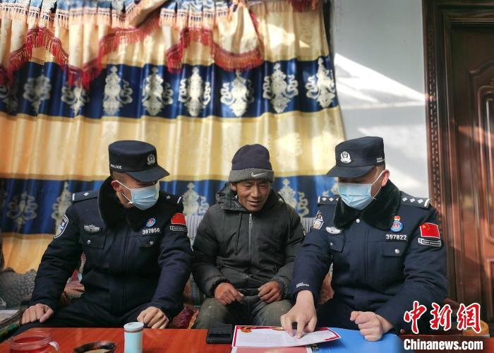 圖為普瑪江塘邊境派出所民警開展民眾走訪工作。 洛桑曲扎 攝