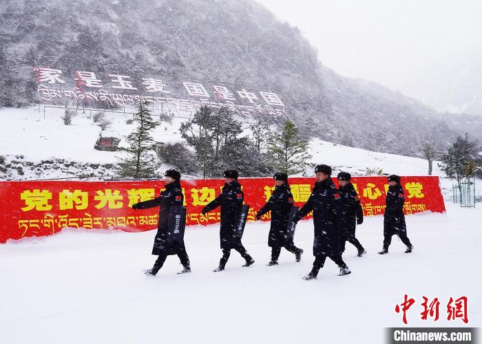 圖為玉麥邊境派出所移民管理警察在大雪中執(zhí)行巡邏任務(wù)?!?蔣兵 攝
