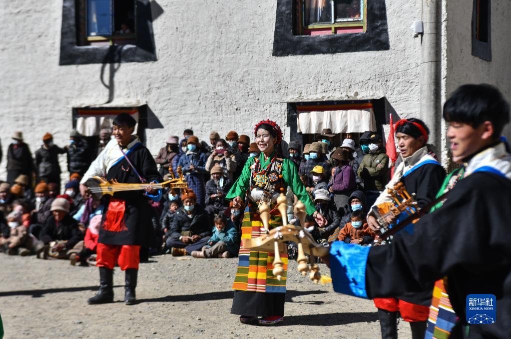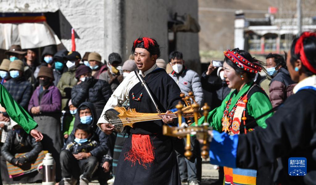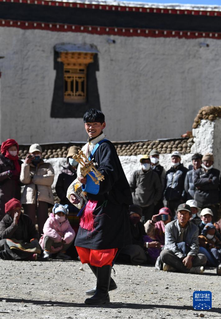 西藏日喀則市芒普鄉(xiāng)普村文藝演出隊的演員在表演(1月21日攝)。新華社記者 晉美多吉 攝