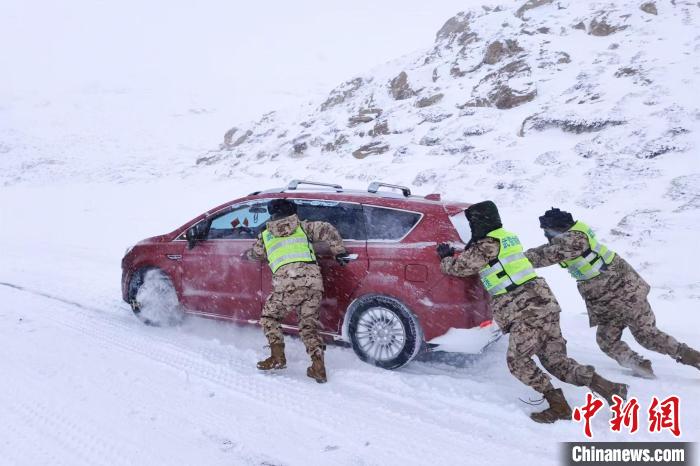 圖為武警官兵幫助過往車輛?!±罡?攝