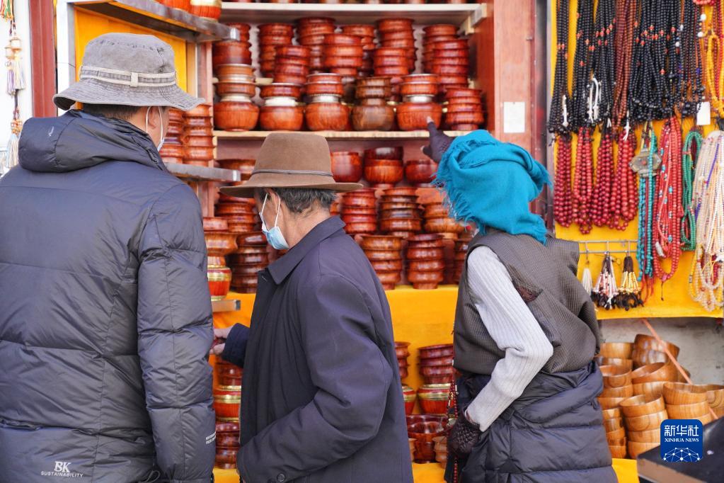 八廓街上,市民正在挑選商品(1月28日攝)。新華社記者黃耀漫 攝