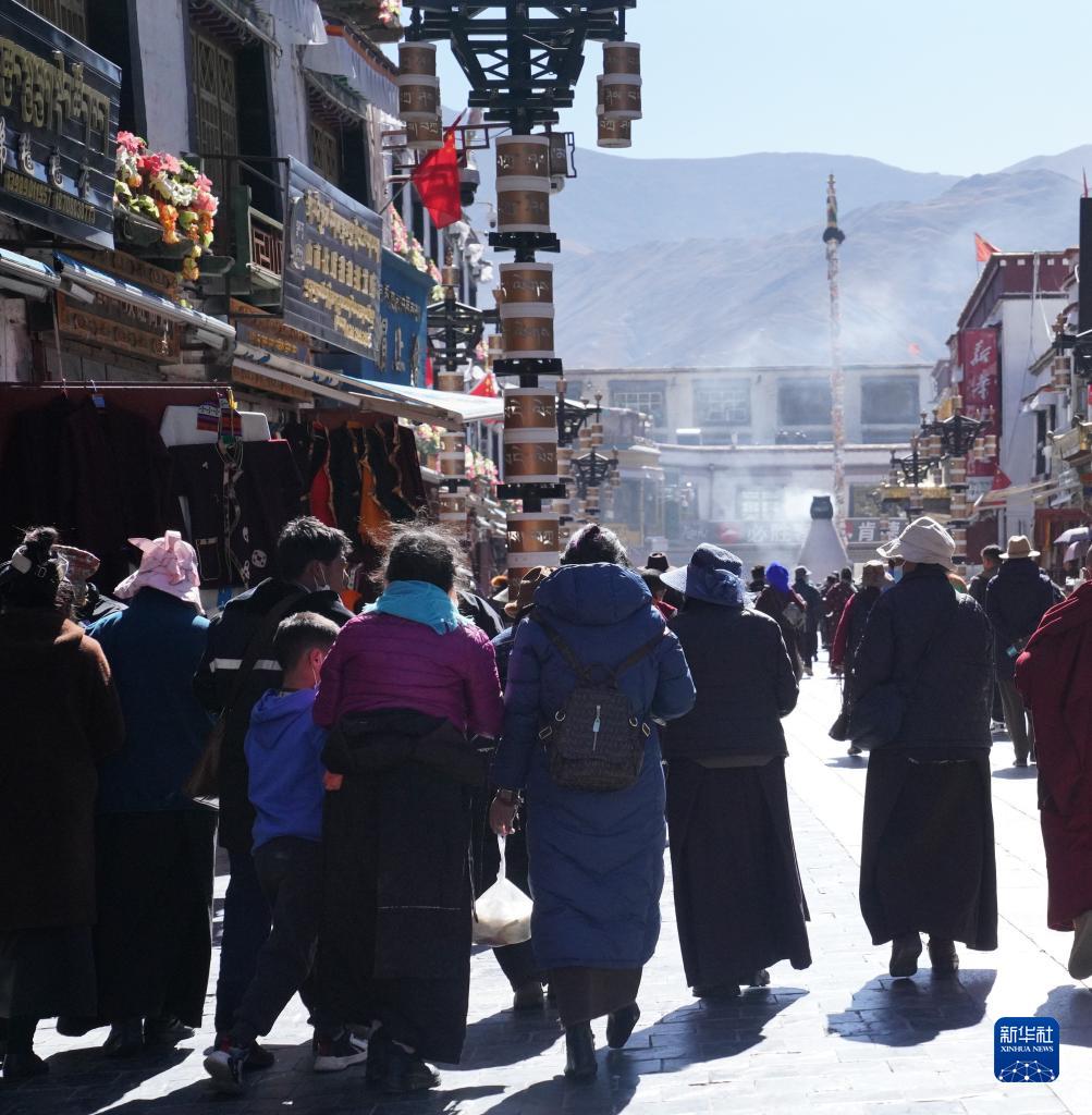 八廓街人來人往,不少本地群眾到此采購藏歷新年所需藏裝、食品等物資。