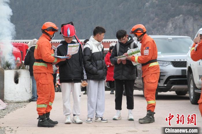 圖為森林消防員為駐地民眾科普防火知識。 林芝市森林消防供圖