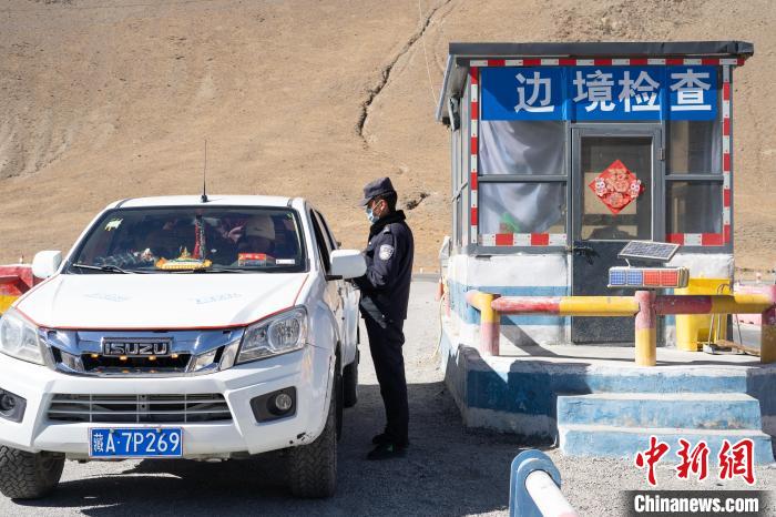 圖為移民管理警察檢查過(guò)往車(chē)輛證件。 貢嘎來(lái)松 攝