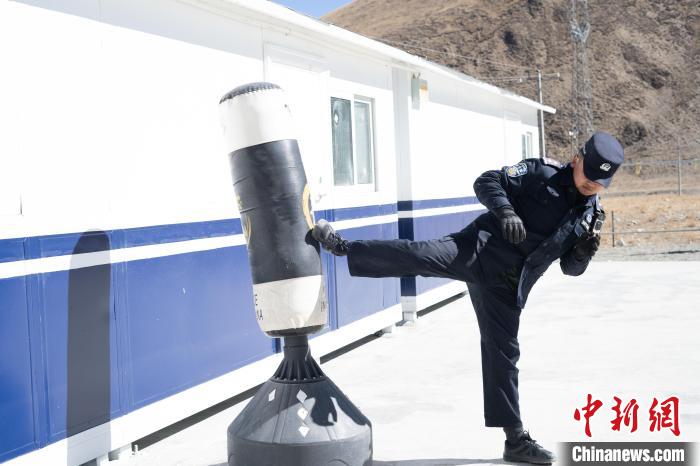 圖為羅布日常鍛煉打拳,他背后是去年12月新建的板房?!∝暩聛?lái)松 攝
