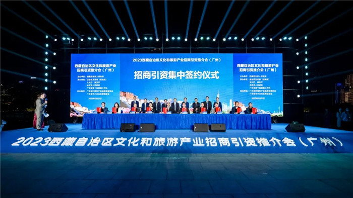 西藏招商引資工作人員與廣東省文旅企業(yè)進(jìn)行了洽談對接,共簽約文化旅游類項(xiàng)目11個(gè),總投資68.43億元。