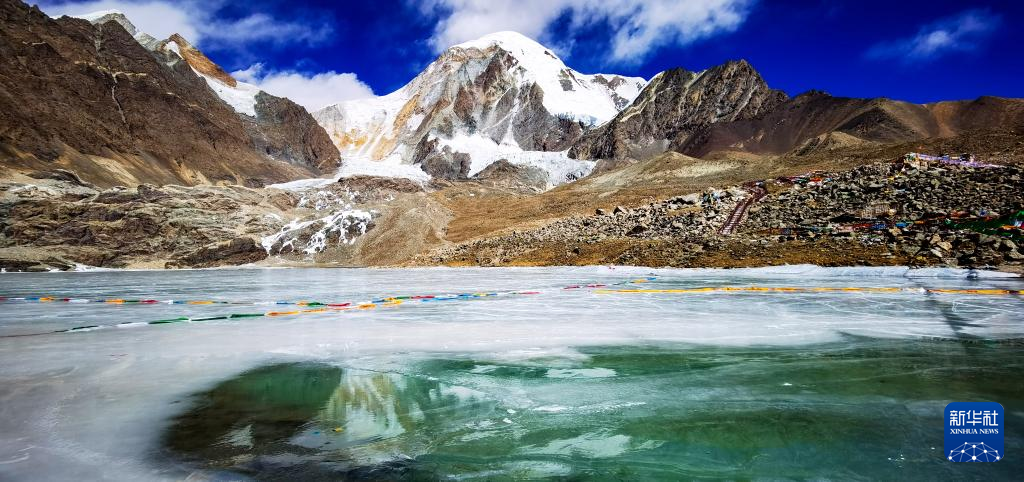 西藏拉薩市尼木縣境內(nèi)的瓊穆崗嘎峰海拔7048米,是念青唐古拉山脈南端最后一座高峰。瓊穆崗嘎冰川氣勢恢宏,冰臼湖群點綴其間,湖水結(jié)冰后呈現(xiàn)出夢幻般的色彩,恍若仙境。新華社記者 沈虹冰 攝