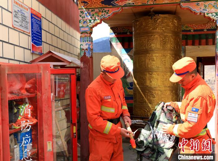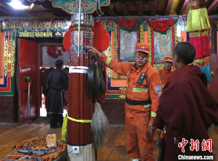 森林消防隊員正在排查寺廟火災(zāi)隱患?!∥骼@拉翁 攝