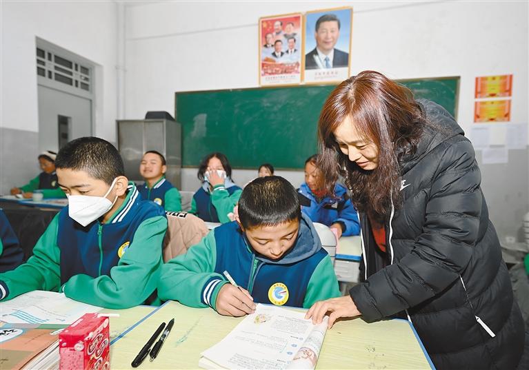 西格辦中學女教師給學生輔導功課。 王敏 攝