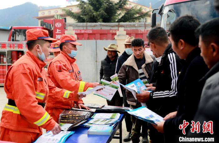林芝市森林消防支隊指戰(zhàn)員在進(jìn)行防火宣傳知識講解。西繞拉翁 攝