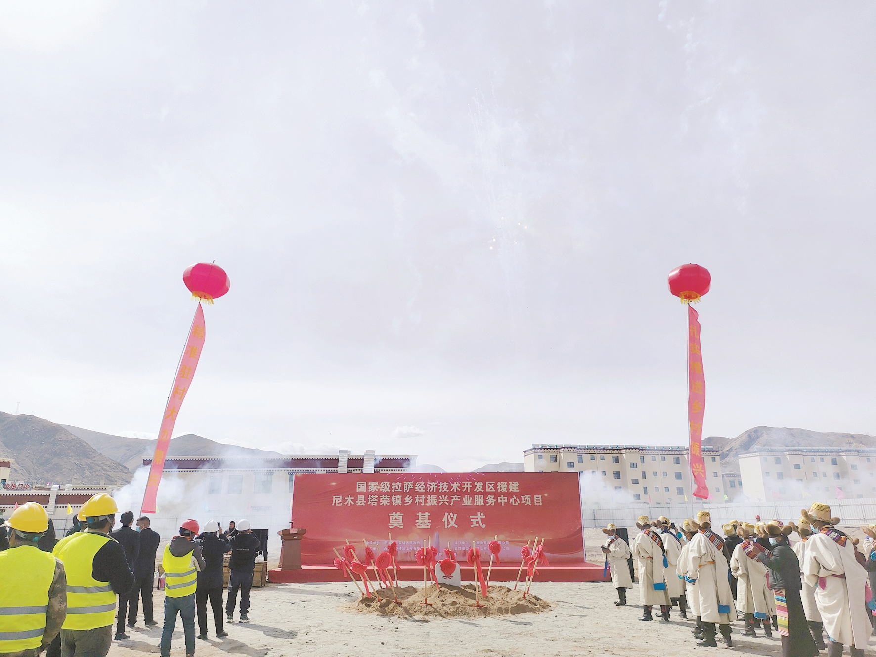 3月20日,拉薩經(jīng)開區(qū)援建尼木縣塔榮鎮(zhèn)產(chǎn)業(yè)服務(wù)中心項目奠基儀式舉行。圖為奠基儀式現(xiàn)場。 拉薩融媒記者 李從芳攝