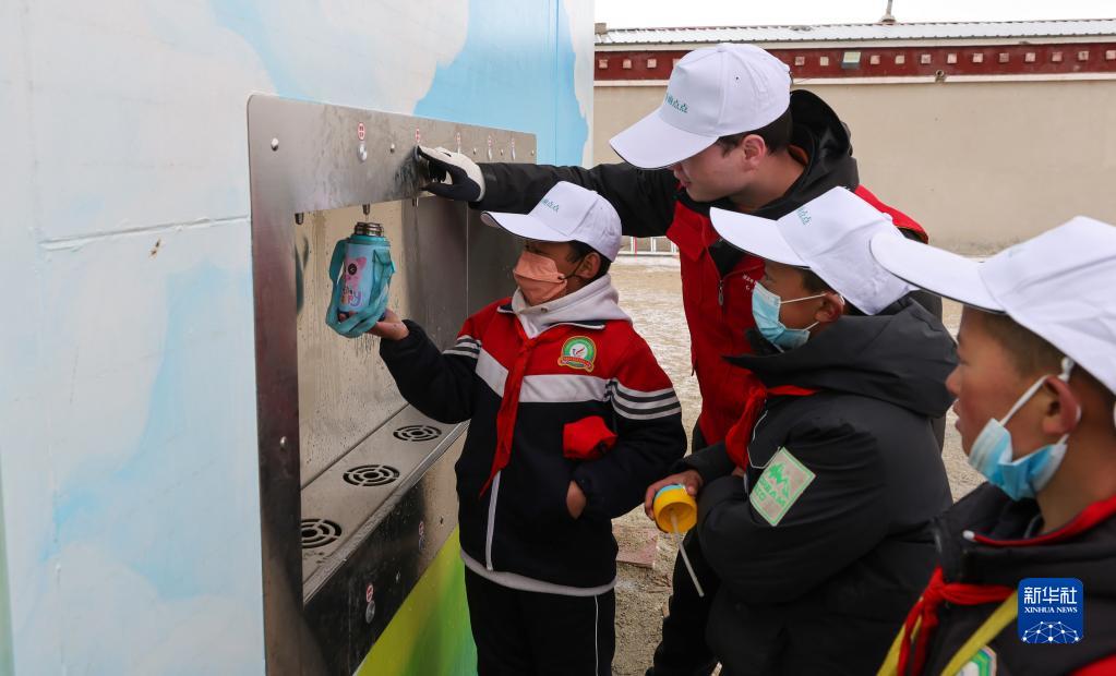 3月21日,那曲市色尼區(qū)香茂鄉(xiāng)小學的同學們在新啟用的凈水站打水。新華社記者 姜帆 攝
