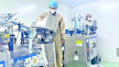 西藏甘露藏藥股份有限公司藏藥生產(chǎn)車間內,工人在忙碌。次仁拉姆攝/光明圖片