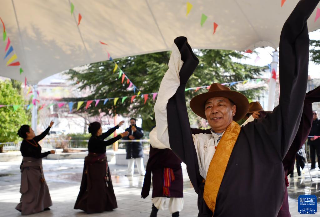 3月28日,拉薩西郊安居苑藏族群眾慶祝西藏百萬(wàn)農(nóng)奴解放64周年。新華社發(fā) (覺(jué)果 攝)