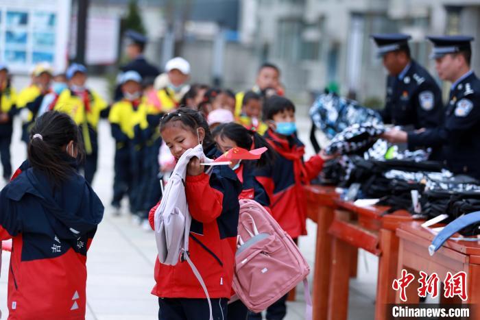 移民管理警察為學(xué)生發(fā)放書包,鼓勵(lì)學(xué)生好好學(xué)習(xí),將來(lái)成為棟梁之材。 肖富貴 攝