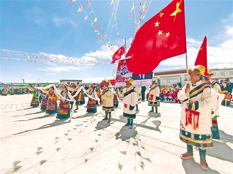 悠揚(yáng)的歌聲獻(xiàn)給黨,歌唱黨的英明領(lǐng)導(dǎo);歡快的舞蹈跳起來(lái),跳出人民幸福生活。從珠峰腳下到年楚河畔,從高原牧場(chǎng)到山谷林地,處處升起面面五星紅旗,贊美共產(chǎn)黨的歌聲響徹天際,匯聚起強(qiáng)大動(dòng)能。