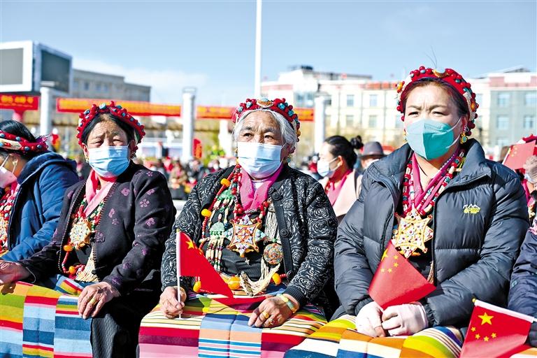 升旗儀式結(jié)束后,在場(chǎng)各族干部群眾觀看了日喀則市紀(jì)念西藏百萬(wàn)農(nóng)奴解放64周年專題文藝演出。大家紛紛表示,經(jīng)歷過(guò)寒冬的人,最知道太陽(yáng)的溫暖;親歷過(guò)黑暗的人,最知曉光明的珍貴。我們要更加緊密地團(tuán)結(jié)在以習(xí)近平同志為核心的黨中央周圍,堅(jiān)持以習(xí)近平新時(shí)代中國(guó)特色社會(huì)主義思想為指導(dǎo),忠誠(chéng)捍衛(wèi)“兩個(gè)確立”、堅(jiān)決做到“兩個(gè)維護(hù)”,牢記囑托、感恩奮進(jìn),大力踐行“四敢”要求,努力在推進(jìn)“四個(gè)創(chuàng)建”、做到“四個(gè)走在前列”中爭(zhēng)創(chuàng)一流、奮勇?tīng)?zhēng)先,為全面建設(shè)社會(huì)主義現(xiàn)代化新日喀則不懈奮斗!