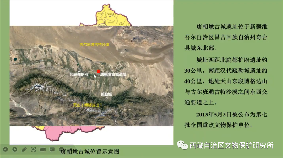 唐朝墩古城遺址位于新疆昌吉州奇臺縣城東北部,東鄰水磨河,西、南、北三面緊鄰縣城居民區(qū)。城址西距唐北庭都護府遺址約30公里,南距漢代疏勒城遺址約40公里,地處天山東段博格達山與古爾班通古特沙漠之間東西交通要道之上。2013年公布為第七批全國重點文物保護單位。唐朝墩古城始建于公元7世紀上半葉的唐代早期,至14世紀逐漸廢棄,主要歷經(jīng)了唐、高昌回鶻和蒙元三個時期。2018~2022年,中國人民大學北方民族考古研究所與新疆文物考古研究所聯(lián)合對唐朝墩古城遺址開展了連續(xù)5年的考古發(fā)掘,在基本厘清城址布局結(jié)構(gòu)和年代序列的基礎(chǔ)上,清理出唐代經(jīng)高昌回鶻時期至元代的各類遺址,包括帶有圍墻的唐代院落遺址、羅馬式浴場遺址、佛寺遺址、景教(東方敘利亞基督教)寺院遺址等。出土了大量的不同時期遺物,印證了天山北麓自唐代至元代多民族融合、多宗教共存、多文化兼容的歷史事實,更為研究和闡釋絲綢之路上東西文化交流、多民族融合的大一統(tǒng)格局形成和發(fā)展歷程等問題,提供了生動而堅實的實物材料。此次發(fā)現(xiàn)為我們探討公元10~13世紀天山北麓的城市生活景象提供了資料與依據(jù),也為我們透物見人,從社會史的角度考察當?shù)囟嗝褡宕笠唤y(tǒng)格局的形成提供了重要線索。