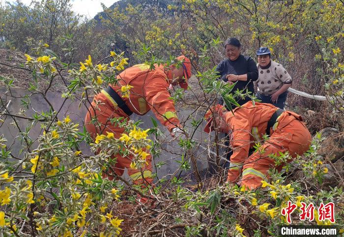 森林消防隊(duì)員在祭祀?yún)^(qū)域開展防火宣傳?!∥骼@拉翁 攝