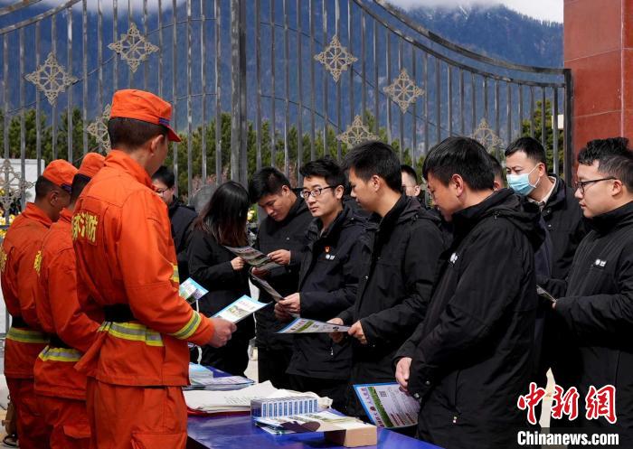 森林消防隊(duì)員正在為前來祭祀的民眾普及防火知識。 西繞拉翁 攝