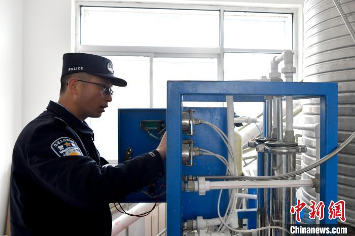 民警李加潘正在檢修保養(yǎng)自來水凈化設(shè)備?!±盍?攝