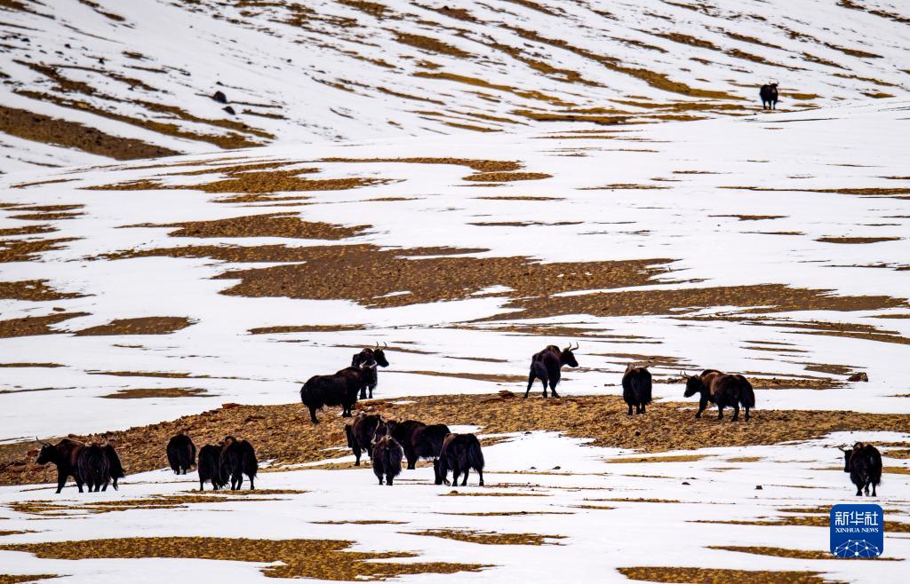 這是在羌塘國家級自然保護區(qū)那曲市雙湖縣區(qū)域內拍攝到的成群的野牦牛(4月17日攝) 。新華社記者 姜帆 攝