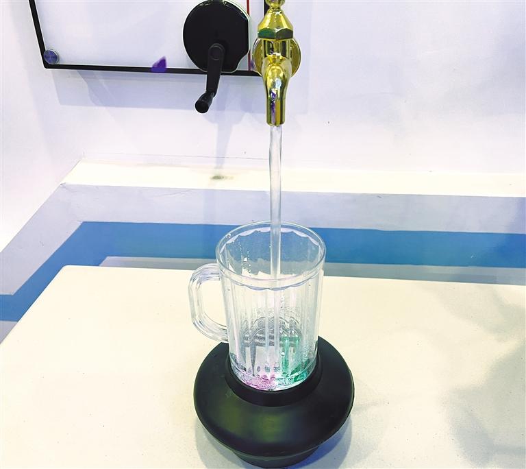 在科技體驗區(qū),一個巨大的水龍頭吸引了所有人的目光,這個水龍頭在沒有支撐的情況下竟然漂浮在空中,一股不知從哪里來的水源源不斷地從水龍頭中流出。在索央的引導下,小朋友輪流去觸摸水流,發(fā)現(xiàn)支撐水龍頭的是一根透明的水管,被流下的水流遮擋,水管把水輸送到水龍頭,再讓水從外面流下,看起來就好像一股從天而降的水柱。