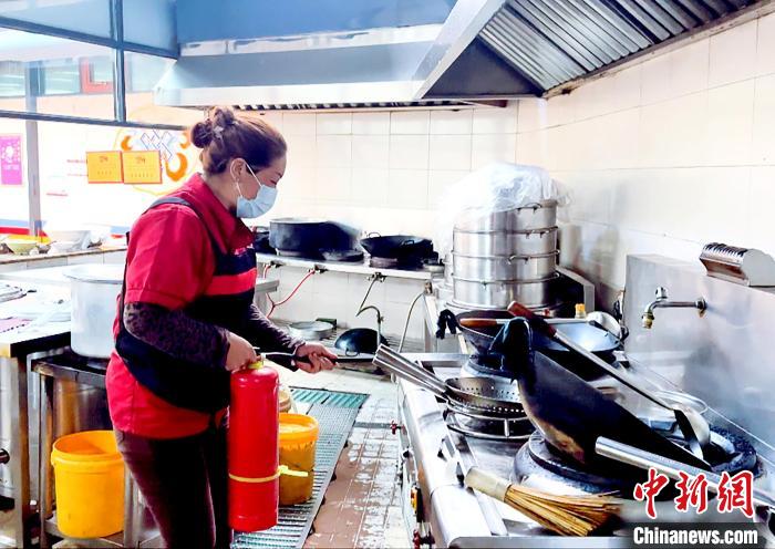 模擬廚房發(fā)生火災,員工發(fā)現(xiàn)火源后,立即關(guān)閉燃氣閥,拉閘斷電,第一時間利用周邊滅火器進行初期火災撲救?!㈣?攝