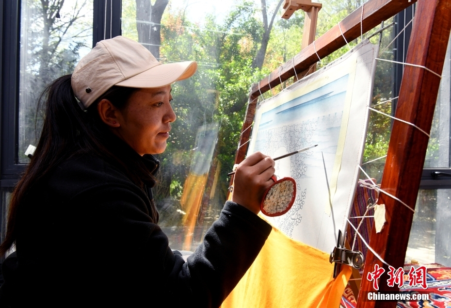 5月8日,西藏雪堆白技工學(xué)校學(xué)生德慶曲珍正在繪制唐卡。位于拉薩北郊的西藏雪堆白技工學(xué)校,通過產(chǎn)學(xué)研等教學(xué)方式保護(hù)傳承民族傳統(tǒng)手工藝術(shù)。多年來,學(xué)校培養(yǎng)了一大批優(yōu)秀的藏族傳統(tǒng)技藝人才。