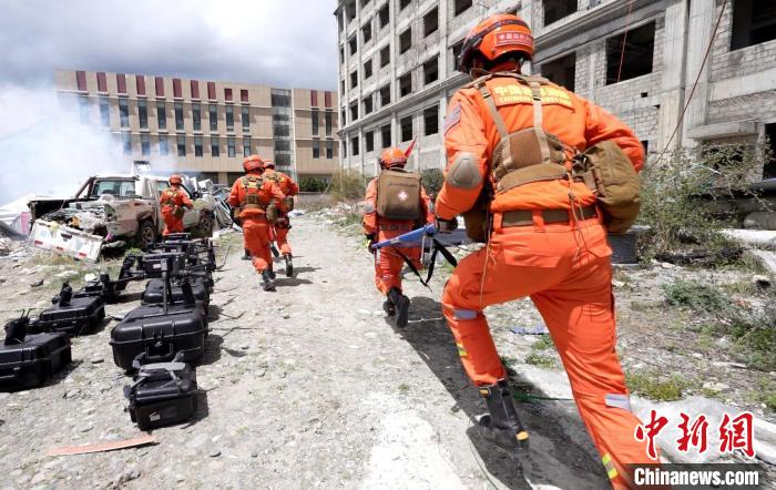 圖為演練中救援現(xiàn)場(chǎng)。西繞拉翁 攝
