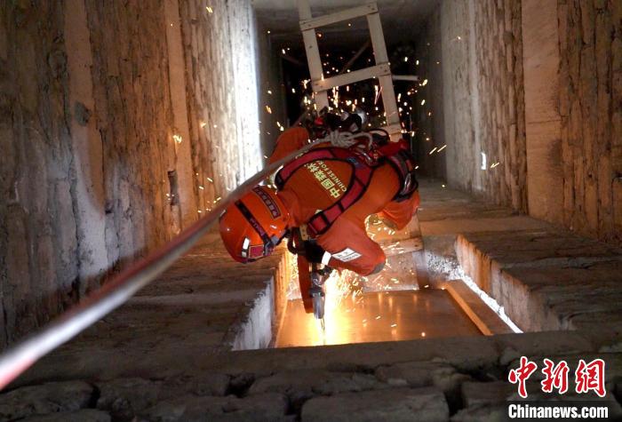 圖為演練中指戰(zhàn)員在電梯井進(jìn)行破拆。西繞拉翁 攝