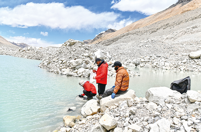 “我們沿著喜馬拉雅山脈做了很多工作,采集了2000多份樣品?!眲⒓褲M懷憧憬地說,“我們會從大本營出發(fā)努力接近海拔7000米區(qū)域,完成15個雪冰樣品和15個沙石樣品采集。希望通過一塊塊拼圖,努力還原青藏高原形成演化的‘大圖紙’。”